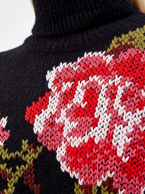 Теплый свитер от REDValentino создан из фактурной пряжи на основе шерсти альпака, выверенный состав обеспечивает максимальный комфорт. Вязаный флористический узор вносит в повседневный образ яркий акцент. Объемный крой и рукава на спущенной линии плеч подчеркивают расслабленный стиль изделия. Детали: высокий ворот, эластичная отделка кромок в английскую резинку.