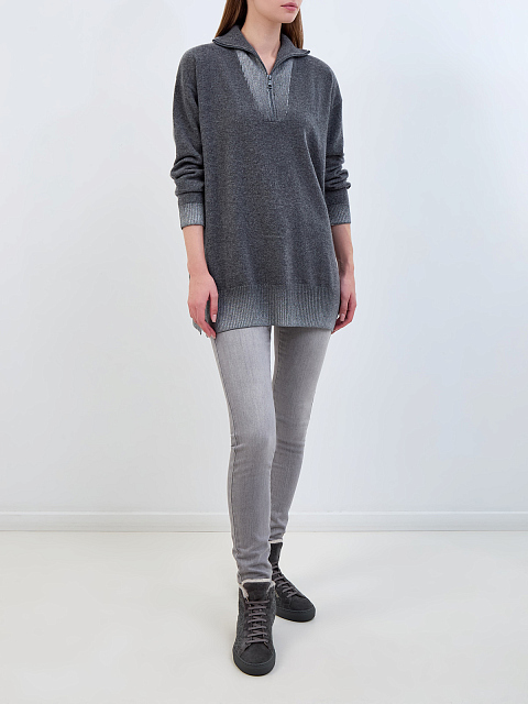 Кашемировый джемпер с градиентным напылением и воротом на молнии