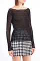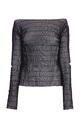 Эффектный женский джемпер из весенне-летней коллекции Sonia Rykiel выполнен из воздушной вуали элегантного черного тона и декорирован тесьмой из шерсти и шелка, которая образует фактурный узор по поверхности. Модель с изящным овальным вырезом горловины дополнена разрезами на рукавах, которые придают изделию фирменный шик.