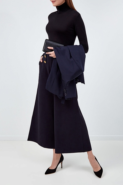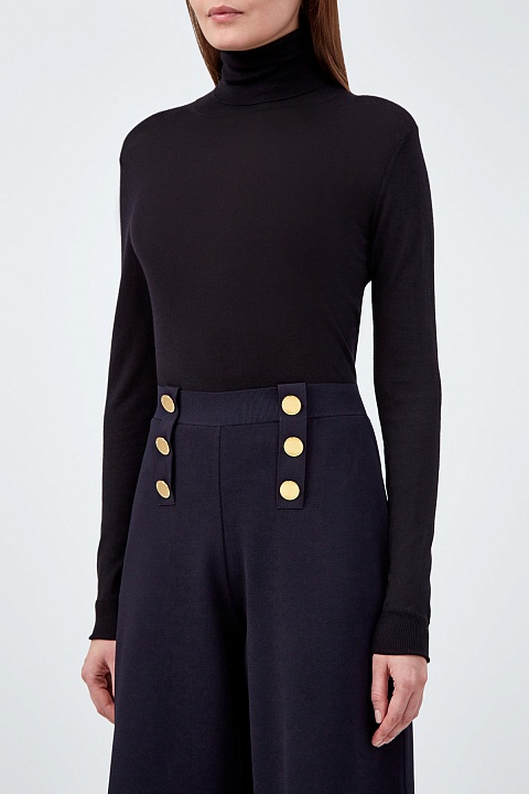 Классическая водолазка от Stella McCartney выполнена из тонкой шерстяной пряжи в черном цвете. Объемный ворот, манжеты и нижний край выполнены в технике английской вязки. Лаконичный дизайн — актуальное решение для осенне-зимнего сезона. Мягкий материал устойчив к низким температурам благодаря свойствам натуральных волокон.