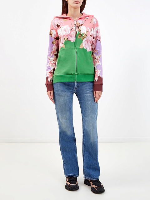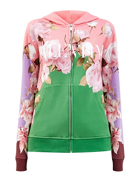 Толстовка-oversize от Valentino выполнена из плотного хлопкового футера — полностью натуральный состав делает повседневные образы еще более комфортными. Яркий флористический принт Flying Flowers разработан специально для каждой детали кроя. Детали: свободный силуэт, застежка на молнию, накладные карманы, макро-монограмма бренда. Сделано в Италии.