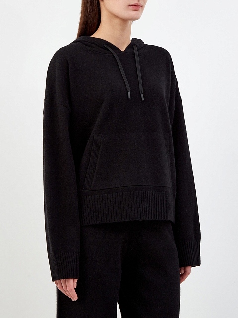 Однотонное худи из ангоры и шерсти с регулируемым капюшоном