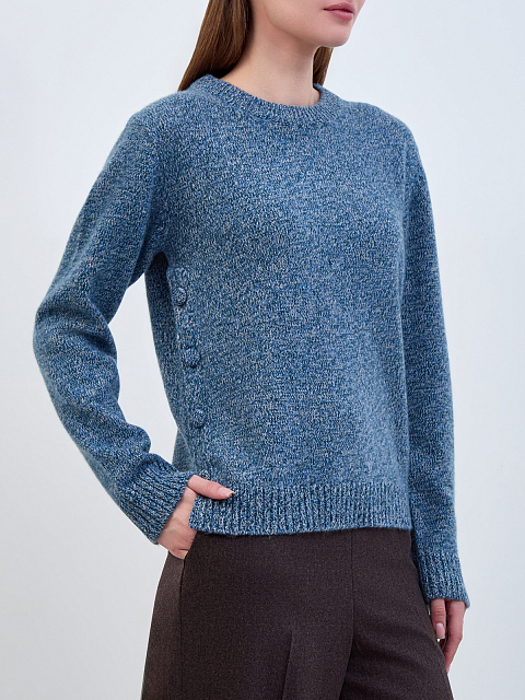 Джемпер из меланжевой кашемировой пряжи с разрезами на пуговицах