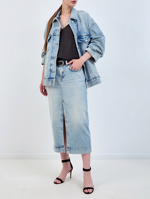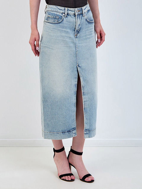 Юбка-миди из выбеленного денима с высоким разрезом