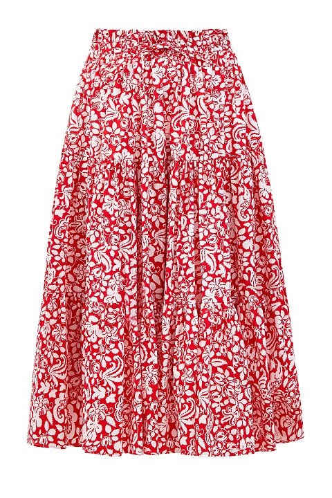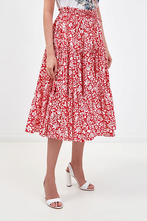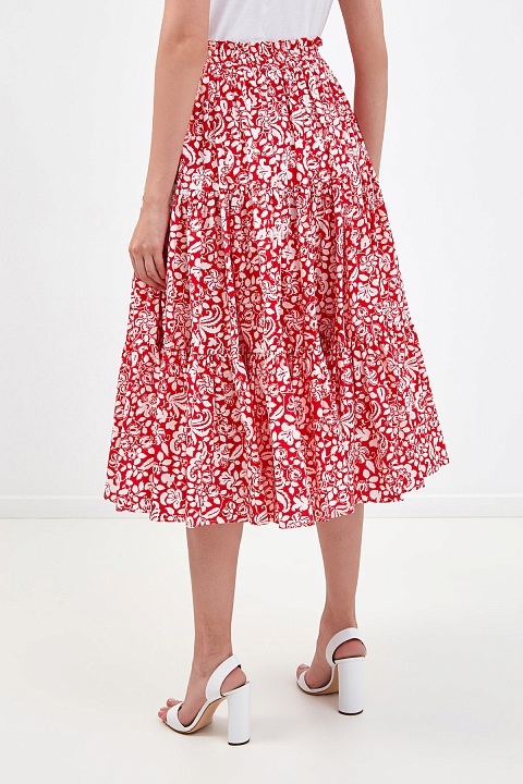 Хлопковая юбка-миди с многоярусным подолом и флористическим паттерном