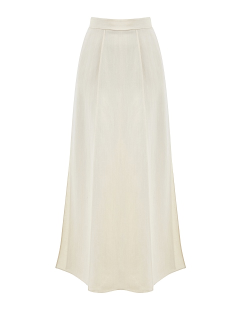 Длинная юбка Long Minimal в стиле 90-х от Brunello Cucinelli. Модель в кремовом оттенке выполнена из легкого твила Fluid на основе вискозы и льна, сочетание волокон придает материалу струящуюся фактуру. Рельефная прострочка и высокие боковые разрезы подчеркивают расслабленный стиль изделия. Детали: застежка на молнию, прорезные карманы, тонкая полуподкладка. Сделано в Италии.