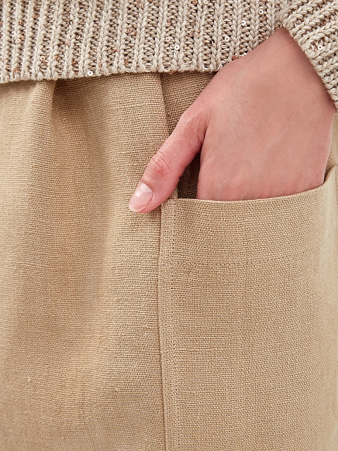 Юбка из плотной льняной ткани с поясом и защипами