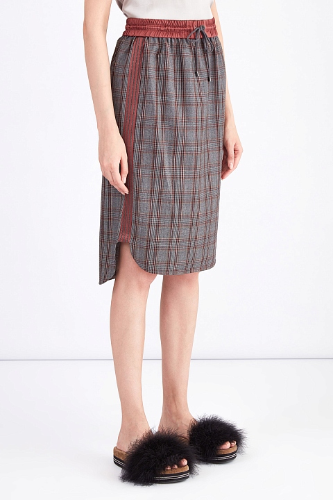 Шерстяная юбка с эластичным поясом и лампасами контрастного тона