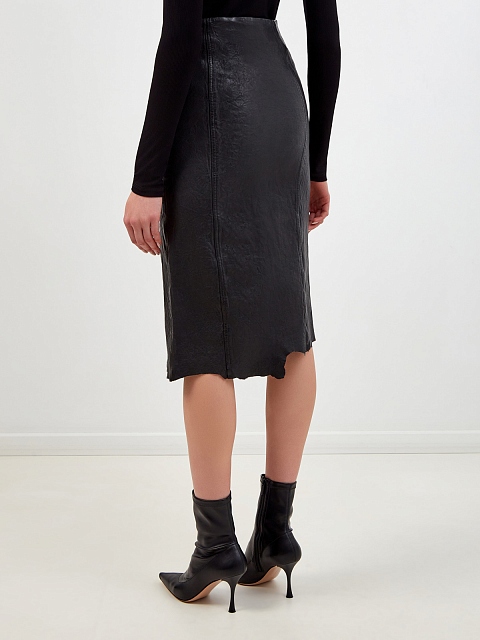 Юбка-миди L-Rupa из кожи с высоким разрезом и логотипом