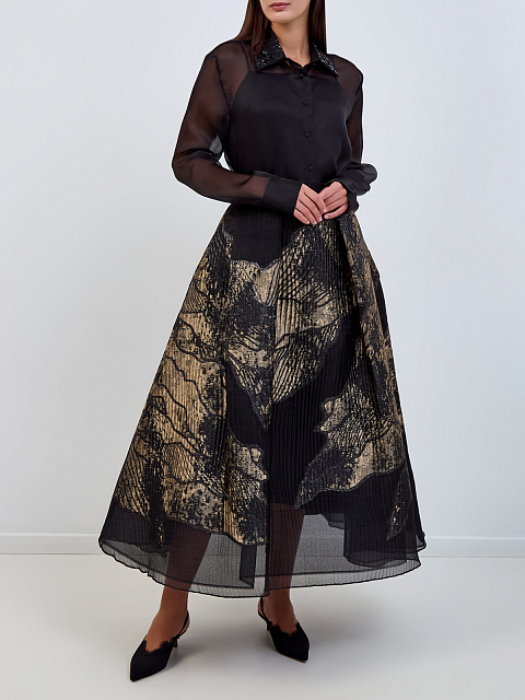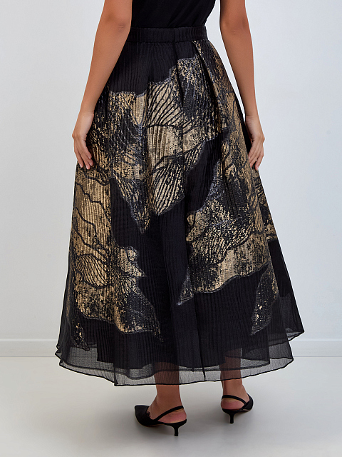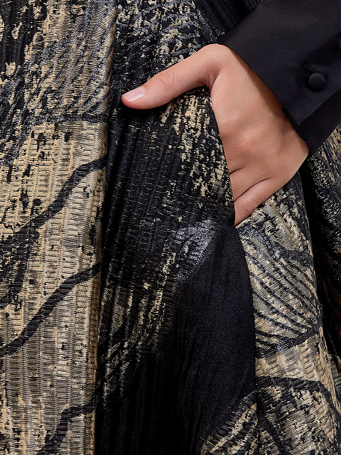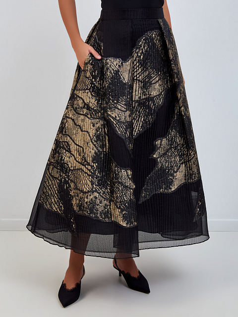 Расклешенная юбка из парчи плиссе с золотистым узором кракле