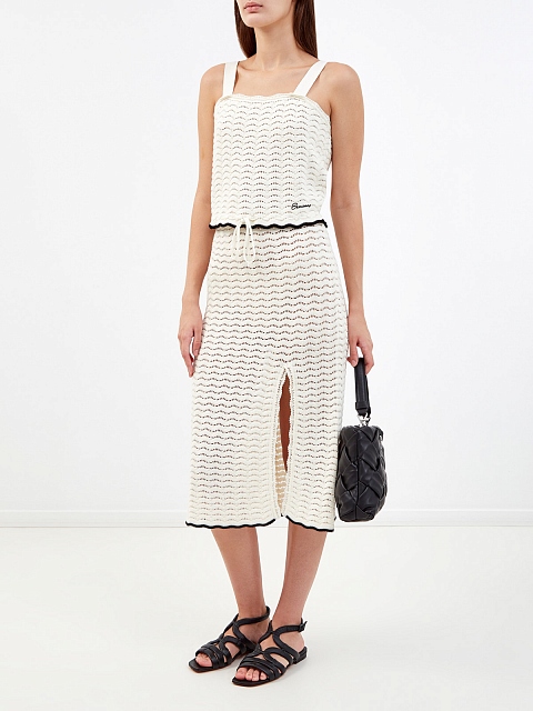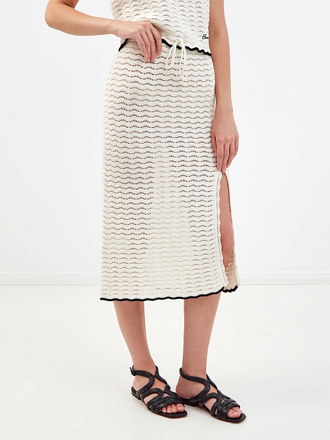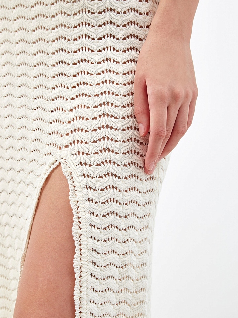 Юбка из ажурной хлопковой пряжи с высоким разрезом