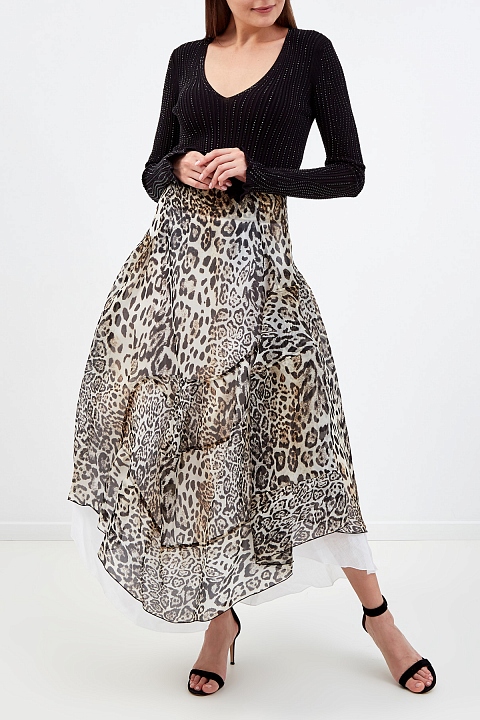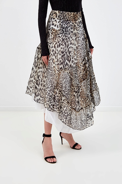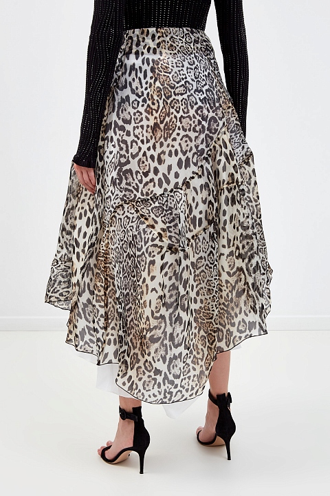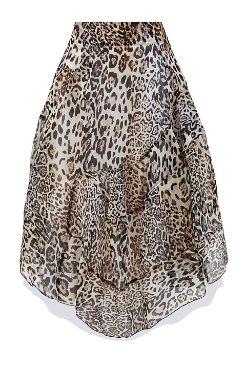 Объемная юбка-миди из шелковой органзы с анималистичным мотивом