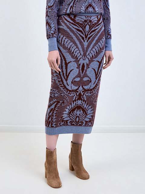 Юбка-карандаш из эластичной шерсти с жаккардовым узором