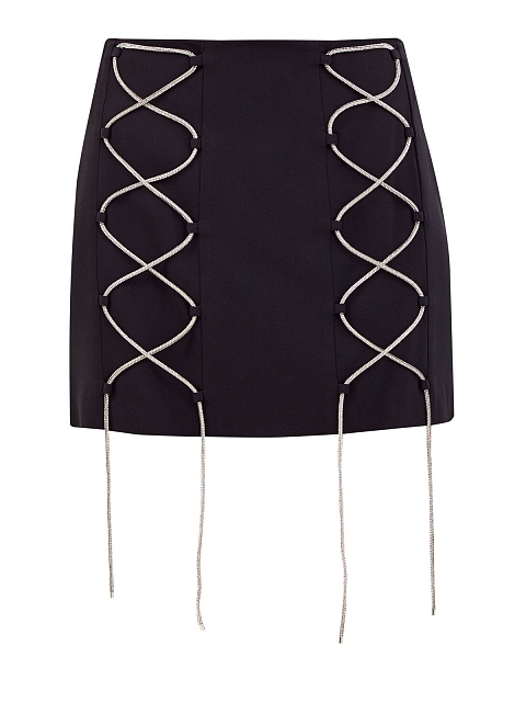 Юбка-мини с завязками из сверкающих кристаллов