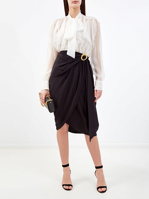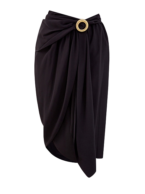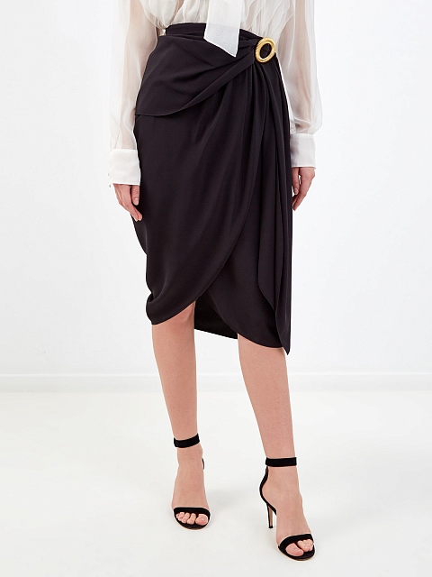 Шелковая юбка асимметричного кроя с золотистой пряжкой