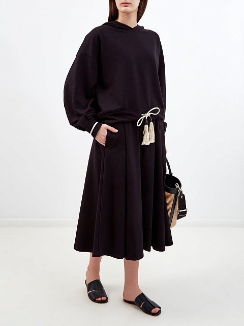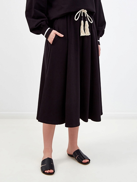 Юбка-миди из плотного хлопка с поясом на кулиске