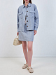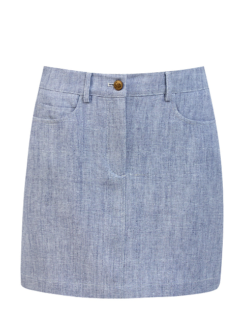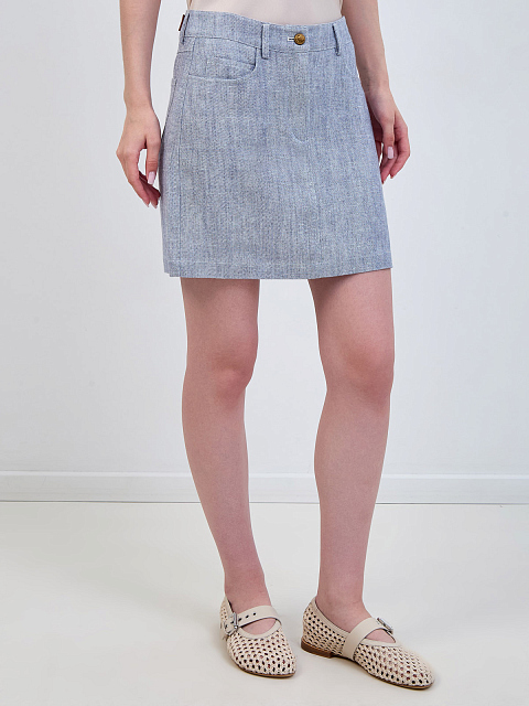 Юбка-мини из льна и вискозы с кожаной нашивкой