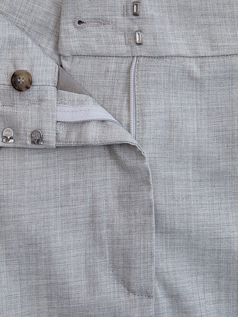 Элегантная юбка-карандаш от Peserico создана из тонкой шерсти с лаконичным мелованным узором, классический крой идеально подходит для создания деловых образов. Изделие в меланжево-сером оттенке дополнено окантовкой из ювелирной цепочки Punto Luce и кожаной шлевкой. Детали: длина миди, разрез по нижнему краю, вытачки для посадки по фигуре, прорезные карманы. Сделано в Италии.