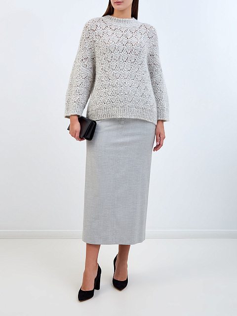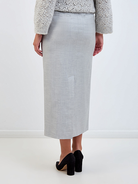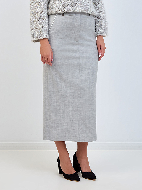 Юбка-карандаш из тонкой мелованной шерсти с ювелирной окантовкой