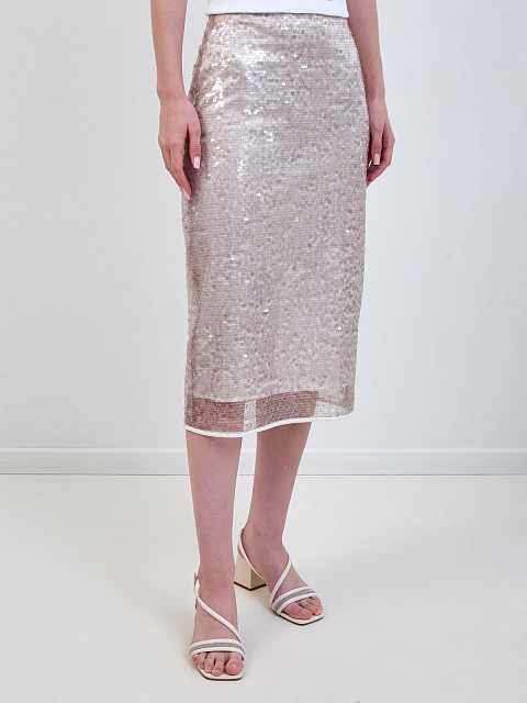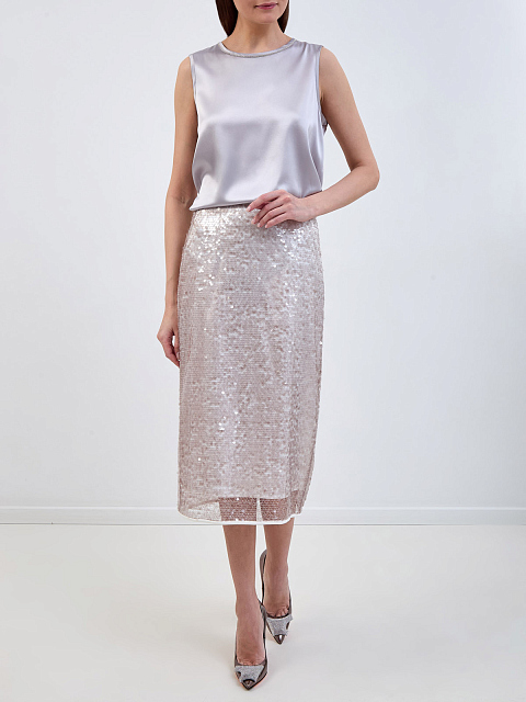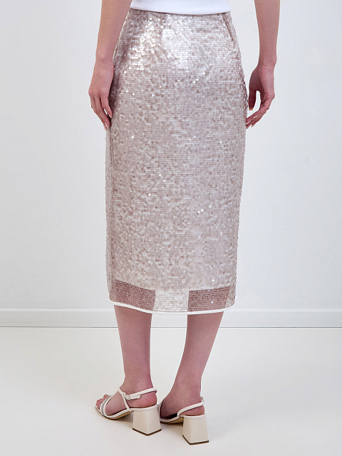 Полупрозрачная юбка-миди с легкими пайетками и атласом