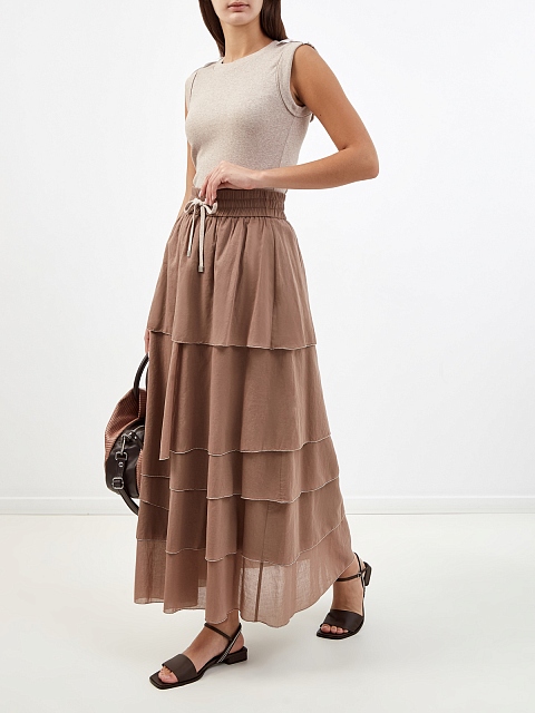 Воздушная юбка-миди из тонкого хлопка с цепочками