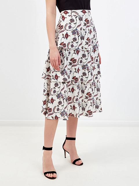 Юбка из струящегося шелкового сатина с цветочным паттерном
