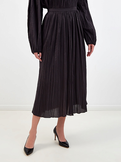 Легкая юбка-плиссе с боковым разрезом и карманами