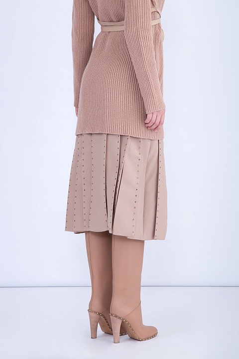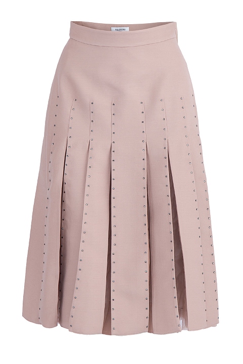 Юбка в складку из шерсти и шелка с отделкой стразами