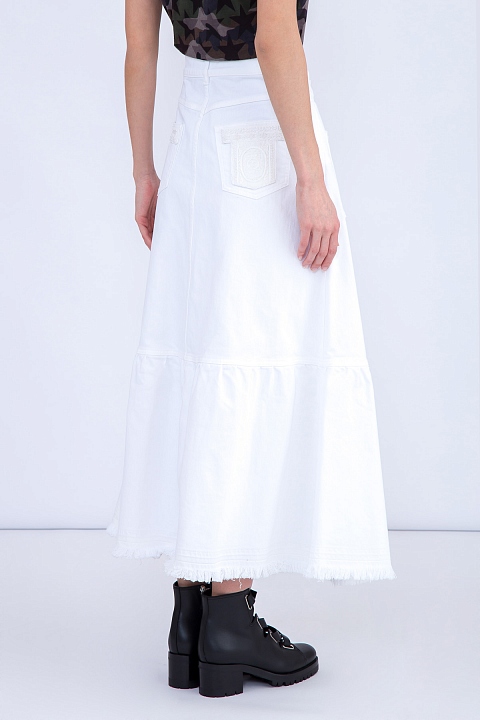Юбка из денима с вышивкой ручной работы и отрезным подолом