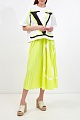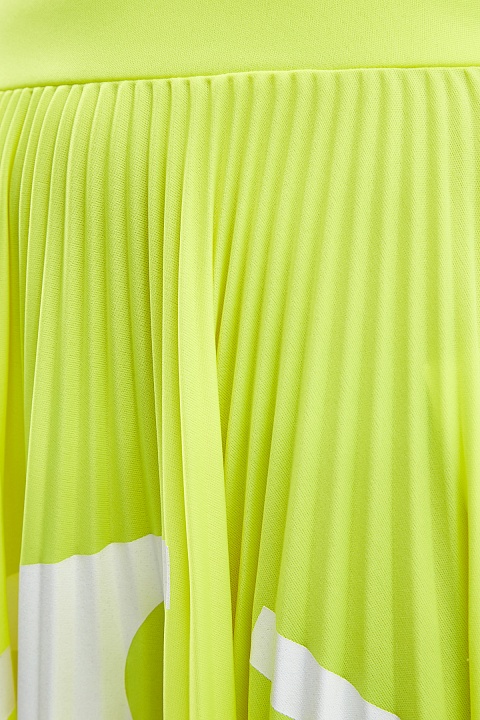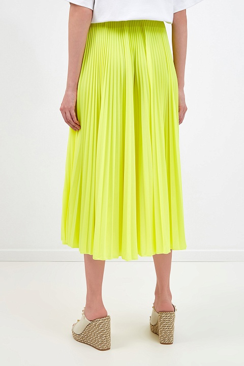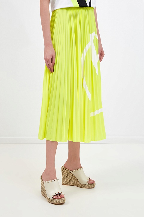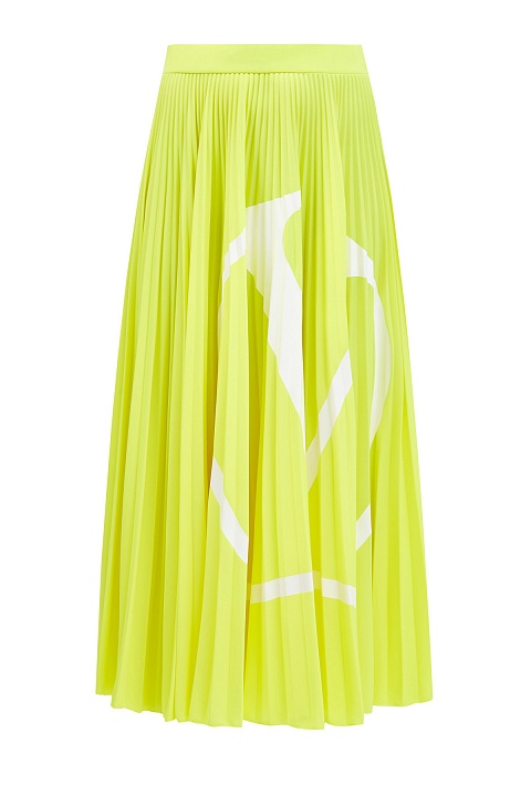 Юбка-миди от Valentino выполнена из джерси с гладкой сатиновой фактурой. Яркий флуоресцентно-желтый цвет оттеняет аппликацию с макро-логотипом VLOGO, который за счет плиссированной поверхности приобретает эффект разделения элементов. Притачной пояс акцентирует внимание на линии талии и делает посадку максимально комфортной. Сделано в Италии.