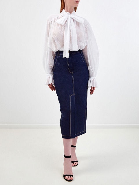 Джинсовая юбка-карандаш с декоративной прострочкой