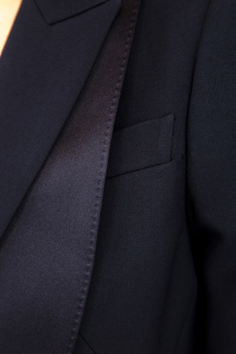 Жакет из шерстяной ткани с двойными лацканами и атласной отделкой