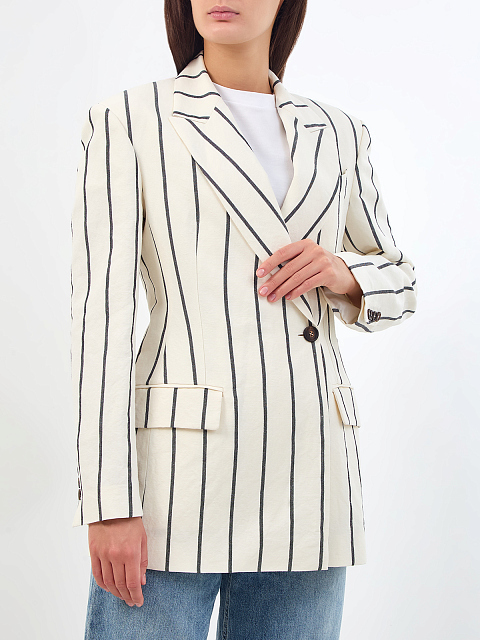 Жакет из льна и хлопка в полоску с цепочкой Мониль на спинке