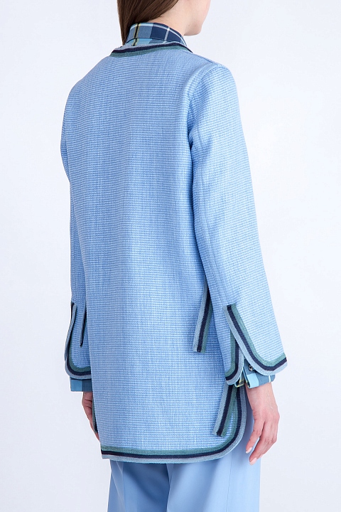 Тканый жакет с отделкой вязаной тесьмой и разрезами по бокам