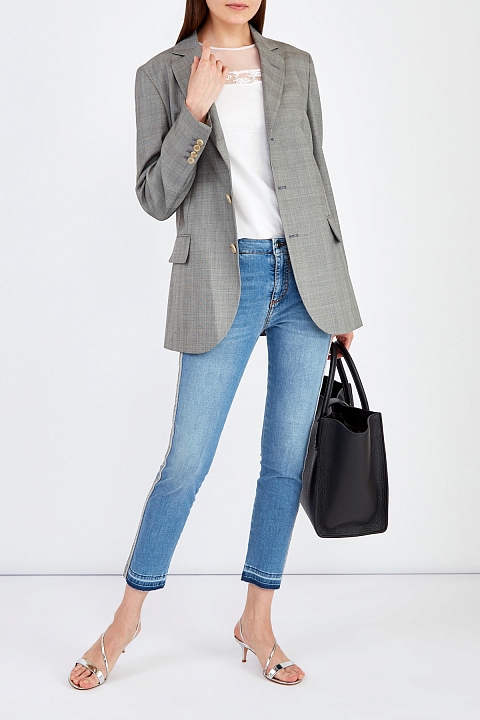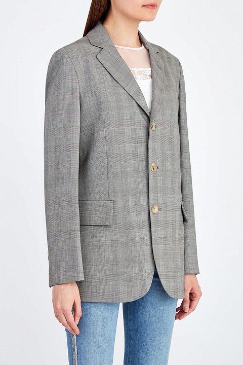 Строгий жакет из шерстяной ткани с принтом в клетку «Принц Уэльский»