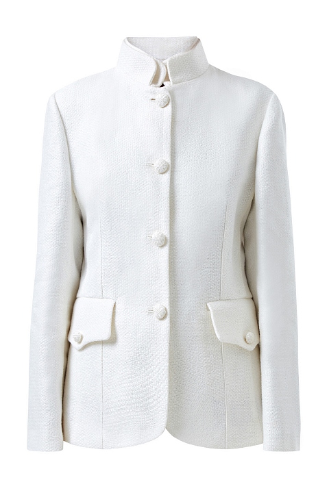 Жакет из льняной ткани двойным воротом-стойкой в стиле милитари