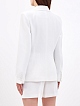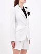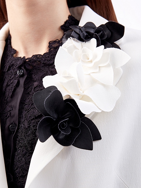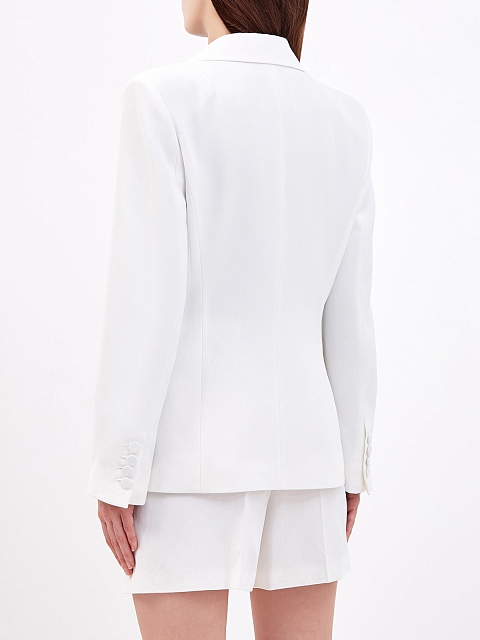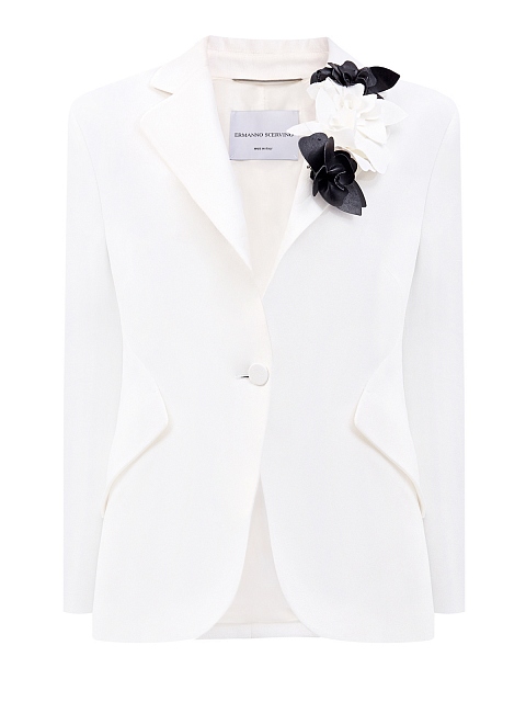 Элегантный жакет от Ermanno Scervino создан из струящегося материала на основе волокон вискозы и льна, гладкая ткань с деликатным матовым блеском хорошо держит форму и не образует складок. Приталенная модель в молочно-белом оттенке дополнена объемной брошью с крупными цветами, а также карманами с архитектурными клапанами. Детали: атласная подкладка, заостренные лацканы, застежка на пуговицу. Сделано в Италии.