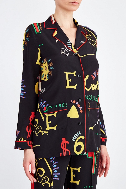 Шелковый жакет с отделкой тесьмой в пижамном стиле