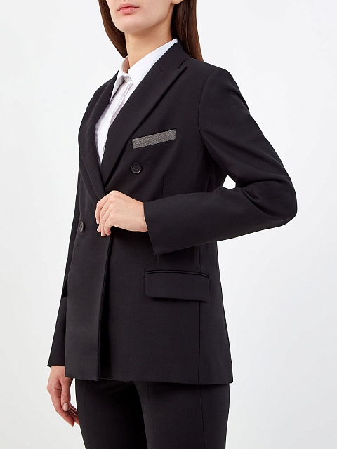 Двубортный жакет из эластичной шерсти с мерцающей деталью