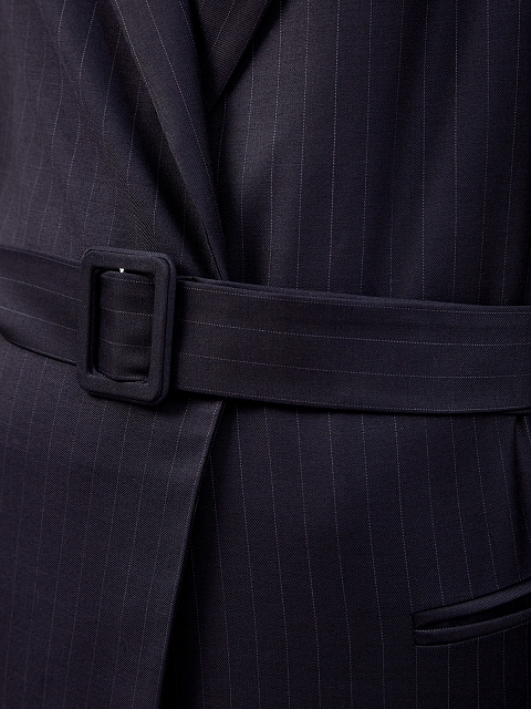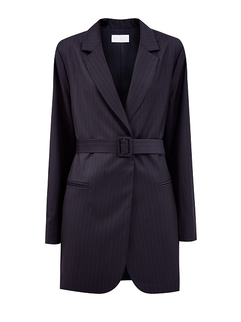 Удлиненный жакет с поясом и принтом в полоску