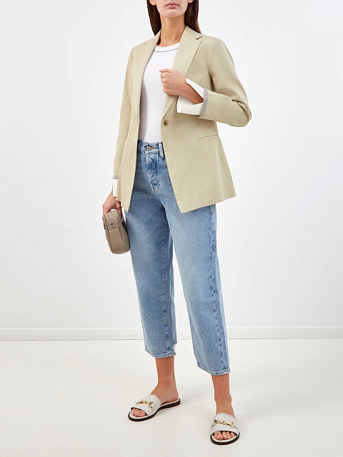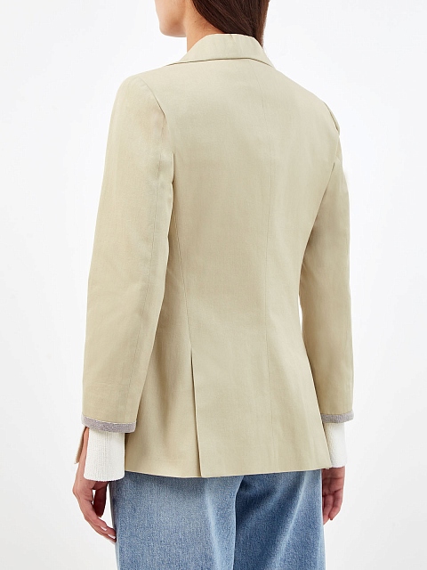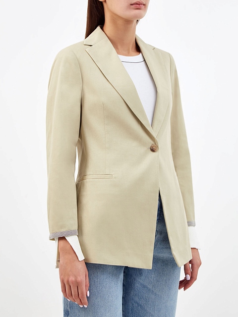 Блейзер из габардина с вязаными манжетами и блестящей деталью