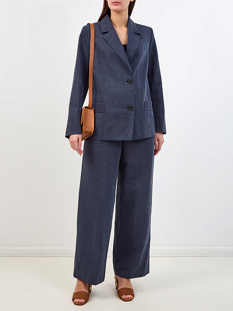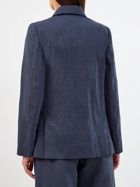 Однобортный жакет из окрашенного вручную хлопка и льна