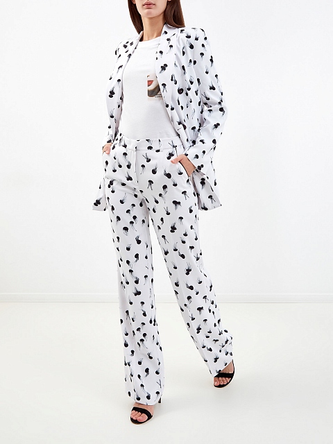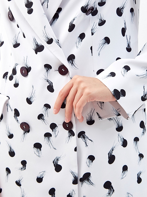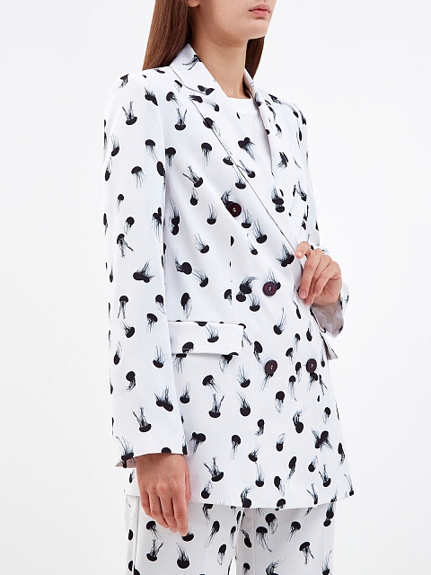 Двубортный блейзер из гладкой ткани с принтом