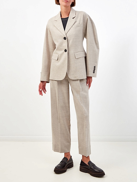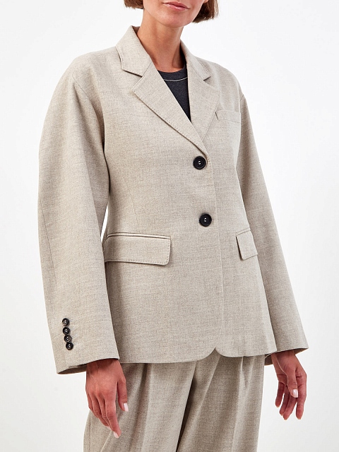 Приталенный жакет из тонкой шерсти с объемными рукавами