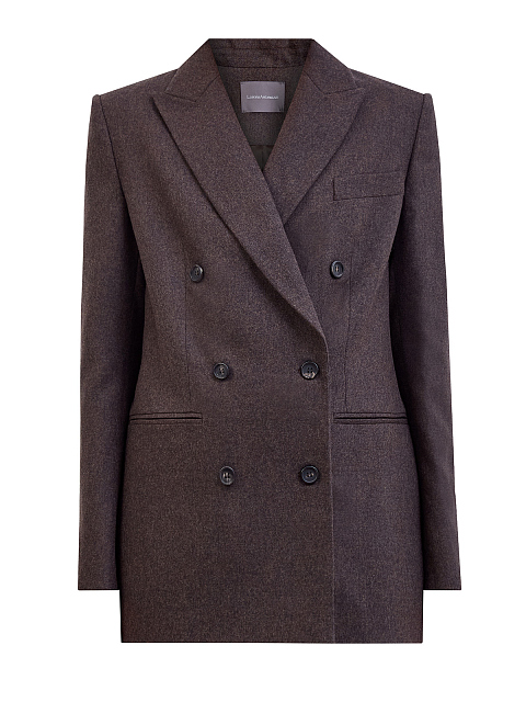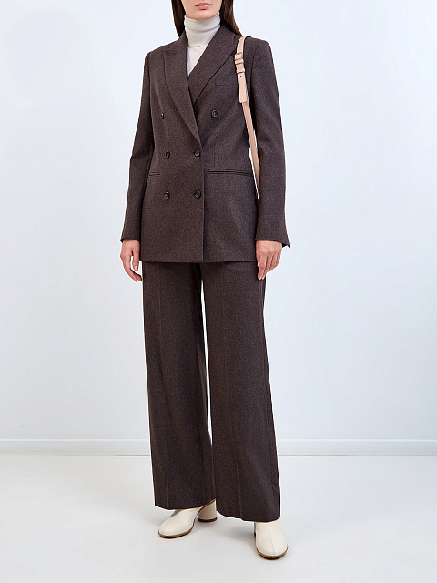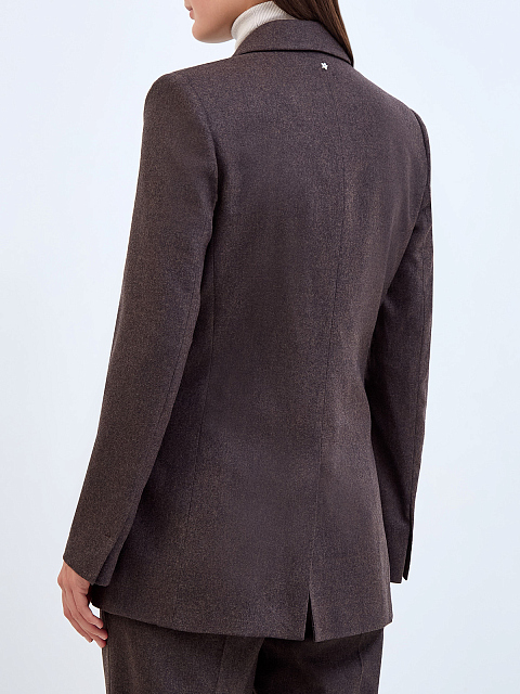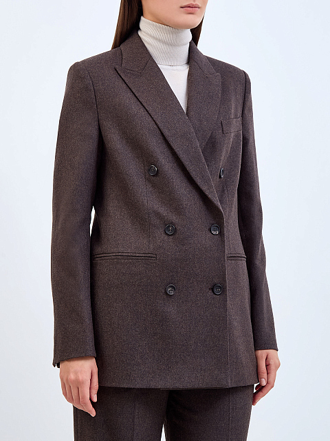 Двубортный жакет из меланжевой шерстяной ткани с символикой