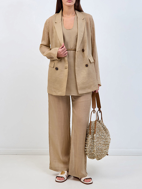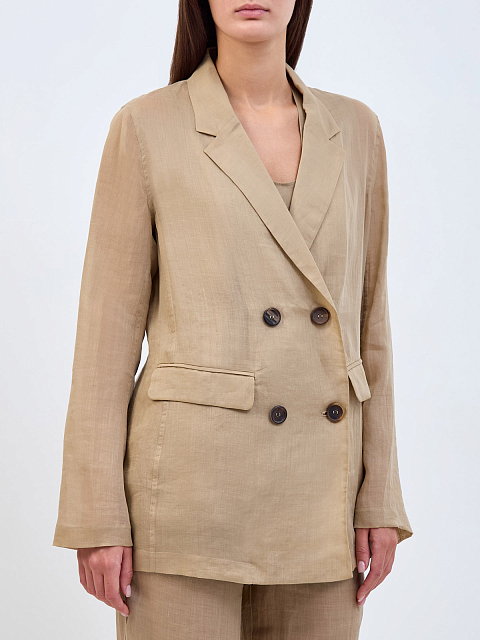 Двубортный жакет из тонкого волокна рами с вязаной деталью