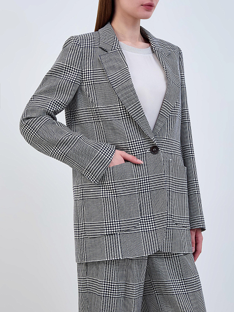 Однобортный жакет из смесовой шерсти и шелка в клетку