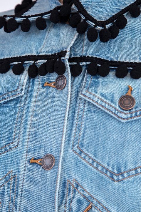 Джинсовка с декором тесьмой с помпонами черного цвета