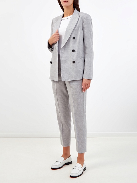 Двубортный блейзер из тонкой шерсти и льна Estrato