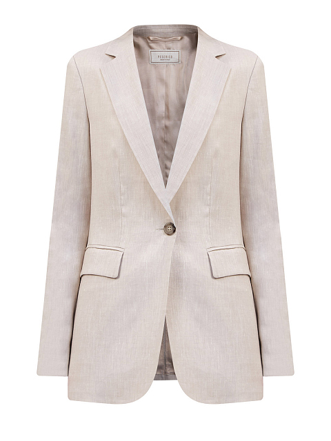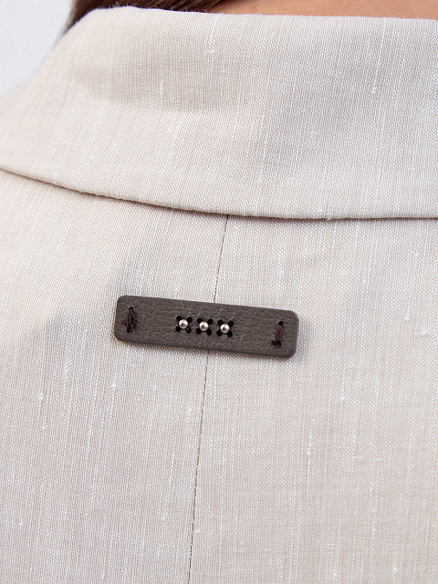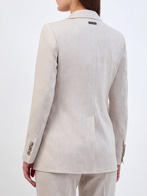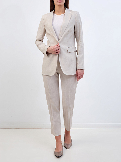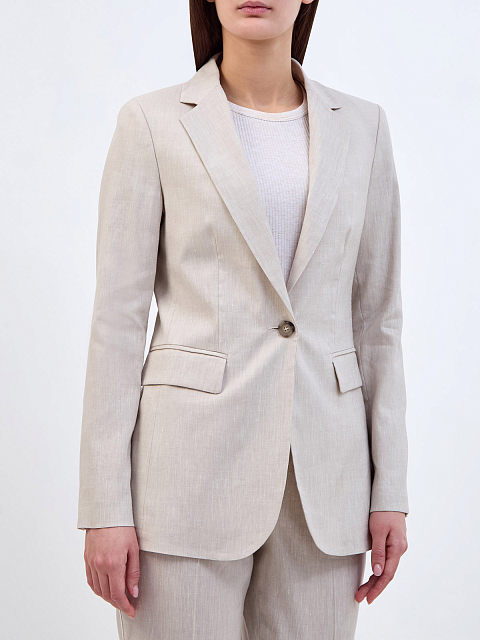 Однобортный жакет из тонкой шерсти и льна с кожаной деталью